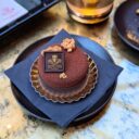 Heerlijke gebakje gevuld met pure chocolade mousse, gebrande pinda’s, karamel en vanille crème.